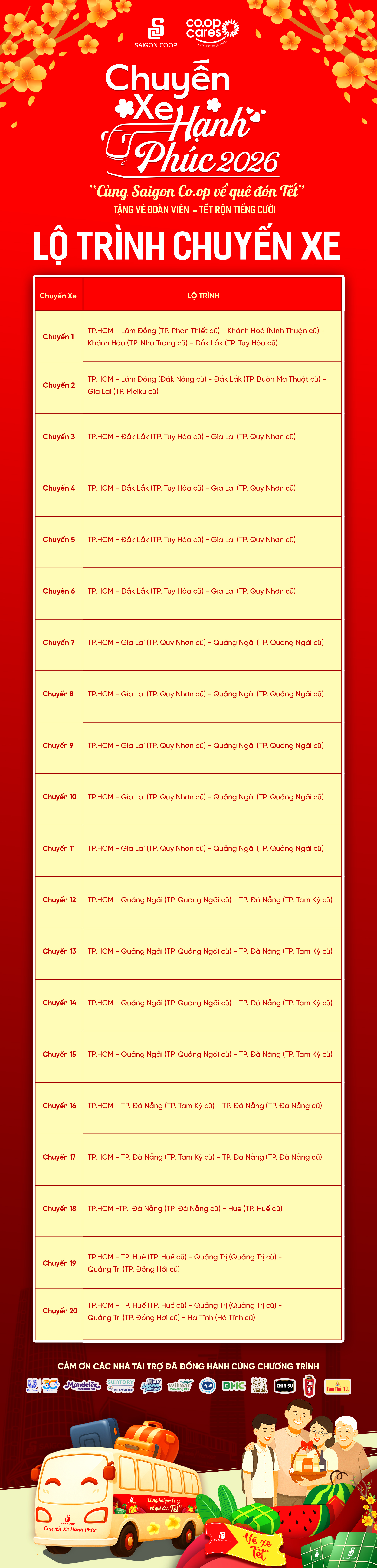 Các chuyến xe trong chương trình “Chuyến xe hạnh phúc – Cùng Saigon Co.op về quê đón Tết”: